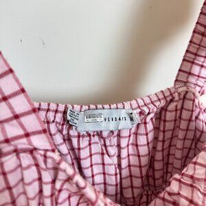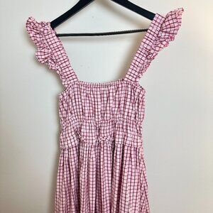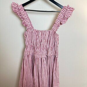 – Gingham printed midi dress w/ side seam slits and ruffle sleeves