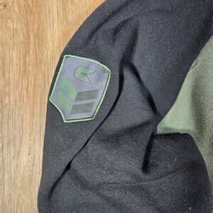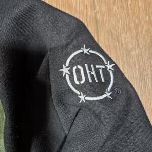 Show your support with this OHT (Operation Hat Trick) military-style sweater in adult size L. Designed in green and black with an embroidered American flag patch, this pullover honors veterans and service members while delivering a sharp, rugged look.