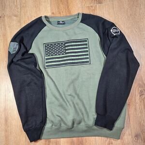 OHT Green Black USA Flag Sweater Adult L Military Veterans Army Embroidered Logo