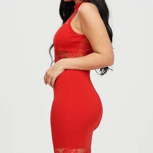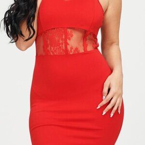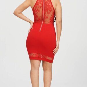 OH-YES Mock Neck Red Lace Bodycon Dress