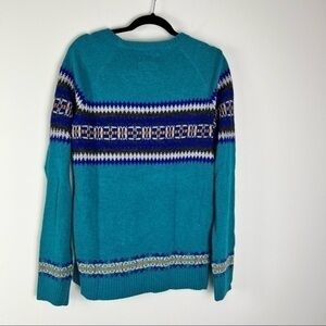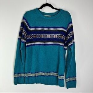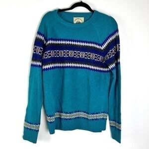 O'Hanlon Mills Mens Pullover Sweater Blue Geometric Crew Ribbed Long Sleeve M