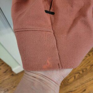 Used condition. PTP apporximately 25 inches. Soft, smooth fleece plus made-to-move stretch. drawstring hood. breathable. pull over style. Small mark as seen in picture.