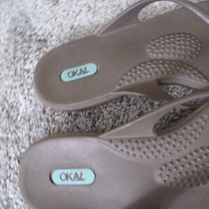 Bedazzled flip flops in very good condition some tread wear MADE IN USA size large fits about 9/10