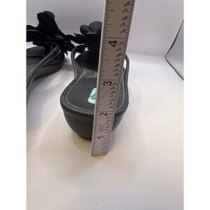 OKA.B Flip Flop thong Sandals Women's Size M Black Flower Petals Wedge Okabashi