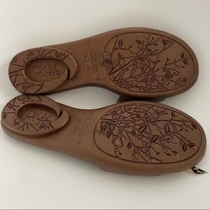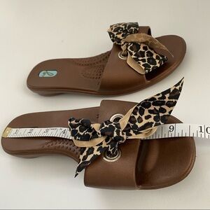 OKAB SANDALS SIZE M 7-8 BRONZE ANIMAL PRINT BOW