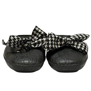 OKABASHI BLACK SLIDE SANDALS WITH CHECKERED BOW SZ ML