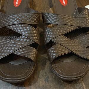 Simple style and comfort make the Cross Strap sandal one of our most classic and versatile women's shoe styles. Perfect to wear around the house and on your everyday errands.
