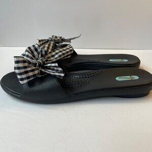 OKAb Madison Slide Sandals With Gingham Check Bow Size Medium (6.5-7.5)