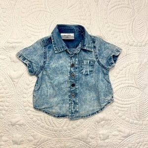 Okie Dokie Short Sleeve Jean White Washed Button-Down Shirt