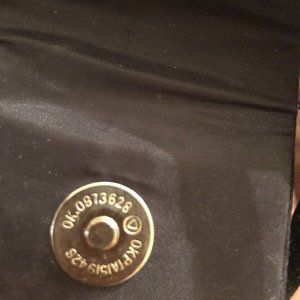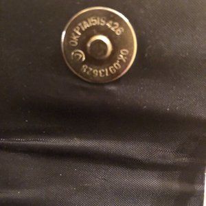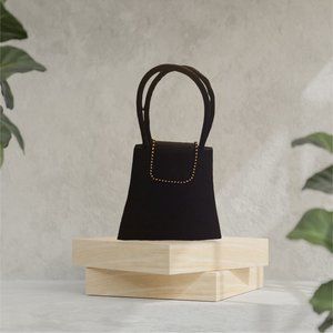 Women's Black/Silver OKPTA Mini Handbag 1519426 OK.0973628 Double Handle with Rhinestone Decorated Flap with a Snap Closure and one interior slip pocket. Attached Black Cord Strap, can be worn crossbody.