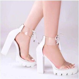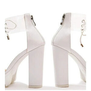 CONSIDERATE DESIGN: Featuring in TPU straps, lace up, back zip, and chunky high heels with platform. Back zip, easy to put on and off. Nice height of platform, keep your feet at a comfy position.