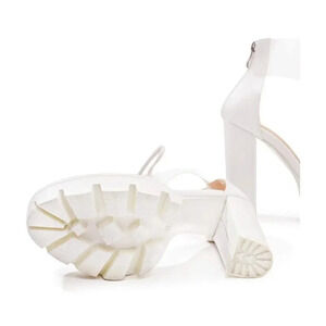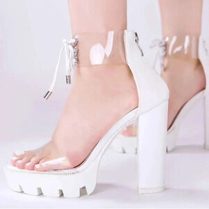 MATERIAL: High-grade TPU, as clear as PVC, softer and more comfortable than the later, not grind feet; Rubber sole, wear-resistant and anti-slip; Patent leather cover on the chunky heel