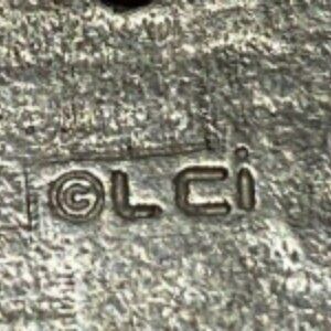 The biggest giveaway for certain eras of Liz Claiborne jewelry is a triangle hangtag. The triangle you see in most eras of Liz Claiborne is a stylized "LC".