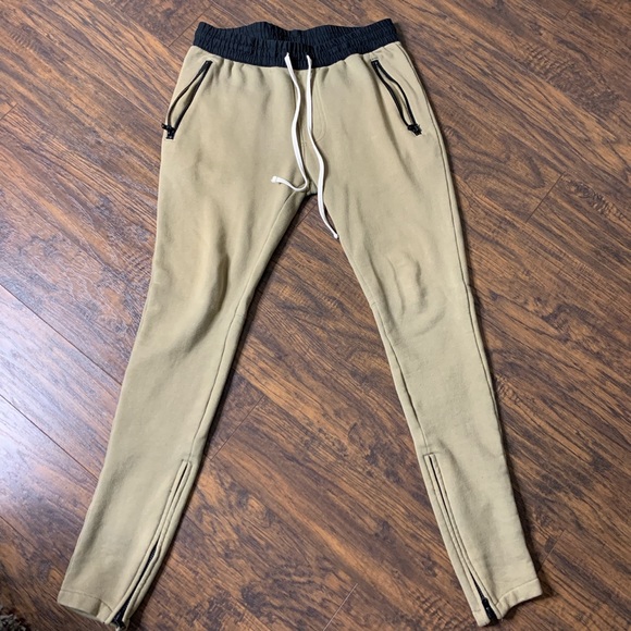 3rd collection from Pac-Sun. Joggers are worn, but in good condition. Tan in color, black lining. Super warm in the winter. Very small stain on back left pant leg (pic shown), no other flaws aside from that. Zip up ankle, and pockets. Size S. Feel free to message me with more questions, or for more pics.
