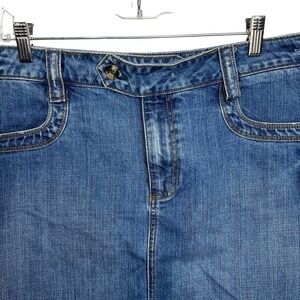 OLD NAVY 16 Low Waist Denim Jean Skirt Raw Hem Medium Wash Ladies w Pockets