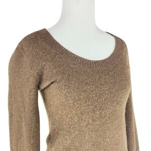 OLD NAVY 2007 Collection 100% Cashmere Brown Scoop Neck Sweater Size S *mended*