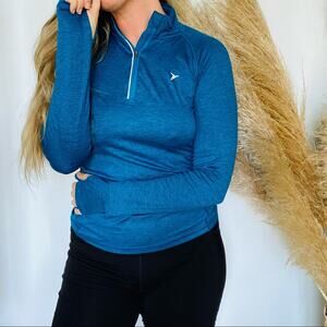 OLD NAVY ACTIVE Navy Blue Stripe Long Sleeve Half Zip Tight Sweater Shirt Gym S