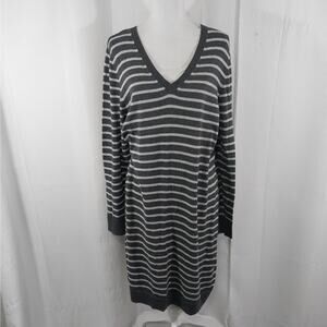 OLD NAVY! ASH & CHARCOAL GRAY FINE KNIT STRIPED, V-NECK SEESTER DRESS! SZ XL