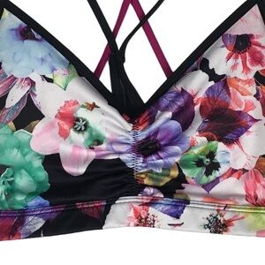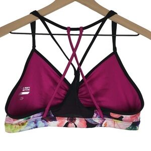 OLD NAVY Active Go-Dry Sports Bra Light Support Floral Strappy Criss Cross Mesh Ruched Workout Size Large