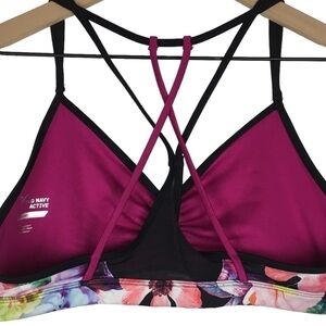 OLD NAVY Active Go-Dry Sports Bra Light Support Floral Strappy Ruched Size Large