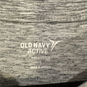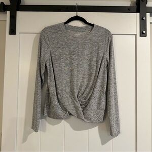 Gently used Old Navy cropped athletic top with twist front. Heathered grey color. Size large.