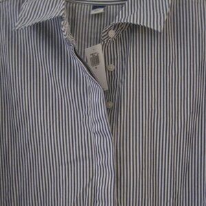 OLD NAVY BLUE AND WHITE STRIPED LONG SLEEVE SWING SHIRT DRESS W/ POCKETS XL NWT. 100% COTTON. THIS IS SUCH A CLASSIC SHIRT DRESS. OLD NAVY CALLS IT A SWING DRESS BUT IS ALSO A TRAPEZE AND ALINE DRESS AS WELL. APPROXIMATE MEASUREMENTS ARE BUST 46" AND LENGTH 35". HAS A COLLAR AND 3/4 OPENING WITH 5 COVERED BUTTONS. IT'S SO CLASSIC AND CUTE AT THE SAME TIME! COMES FROM A SMOKE AND PET FREE HOME. PLEASE LET ME KNOW IF YOU HAVE ANY QUESTIONS. THANK YOU FOR LOOKING!