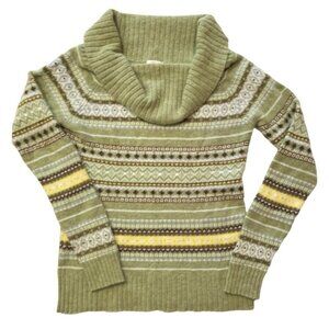 OLD NAVY BRAND Nordic Lambswool Cowl Neck Sweater Women's Large Sage Striped EUC