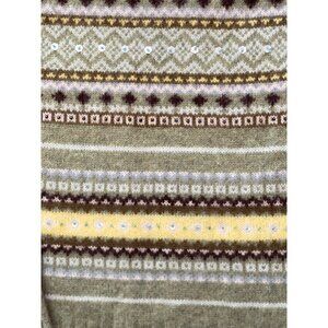 OLD NAVY BRAND "Perfect Fit" ~ Women's Nordic lambswool cowl neck sweater. Size Large. Multicolor striped: Sage green, white, light blue, brown, yellow, olive green. Sequins and beads accent the stripes. Super soft and stretchy.