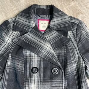 OLD NAVY Black & Grey Plaid Double Button Long Sleeve Pea Coat