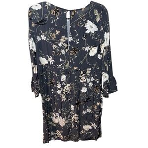 OLD NAVY Blue Gray Floral Butterfly Long Bell Sleeve Dress size Medium