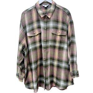 Old Navy flannel shirt womens button down plaid shirt green flannel plus size 3X cotton casual top