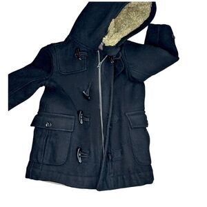 OLD NAVY Boys Hooded Black Wool Blend Toggle Zip Coat Size XS
