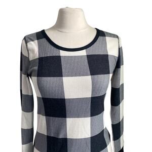 OLD NAVY Buffalo Plaid Top Womens Sz Small Black Waffle Thermal Cabincore