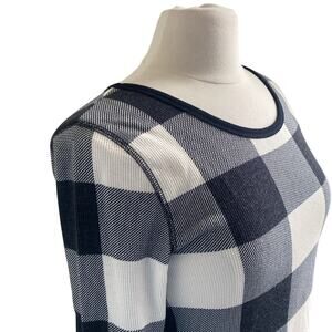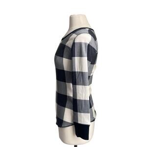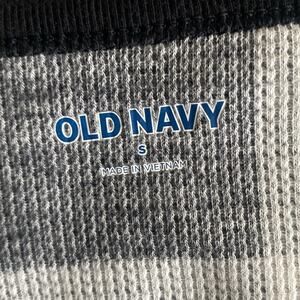 OLD NAVY Buffalo Plaid Top Womens Sz Small Black Waffle Thermal Long Sleeve