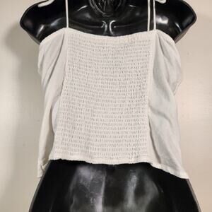 ITEM: OLD NAVY Bustier Camisole Womens M White Tie Straps Smocked Back Linen Blend Bow Beach
