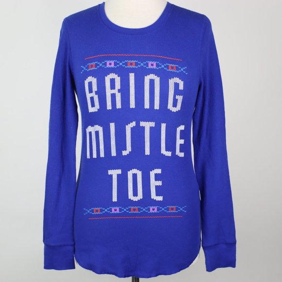 OLD NAVY Christmas Bring Mistletoe Fitted Thermal Sleep Shirt MEDIUM