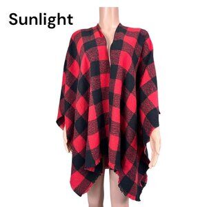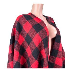 OLD NAVY Cozy Knit Poncho Blanket Scarf -Red-Black Buffalo Plaid -One size NEW