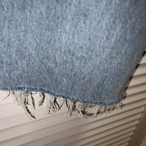 Extra High Rise Boot cut Jeans, Small distressing near pockets (see pics), Button down, Raw hem @ ankle