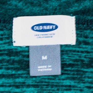 No holes or stains. Normal wear from washing and wearing. Color is greenish-teal
