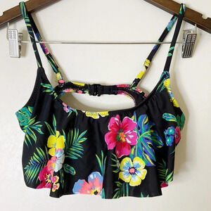 OLD NAVY Flounce Bikini Top Floral Tropical Flower Size Medium Spaghetti Strap