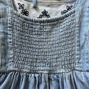The OLD NAVY Flutter-Sleeve Tie Back Chambray Midi Dress is a stylish and comfortable option for casual occasions during the summer season. Made of 100% cotton chambray fabric, this dress features a square neckline with a tie closure, short flutter sleeves, and embroidered floral accents. The bohemian theme and midi length make it a versatile piece that can be dressed up or down, while the pockets and smocked details add practical and stylish elements to the design. Perfect for a relaxed and chic look.