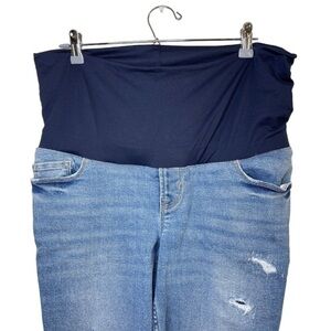 These light wash distressed raw hem full panel maternity jeans from Old Navy make a great closet staple! Never worn and in excellent condition!