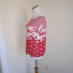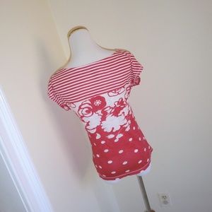 Super cute Old Navy t-shirt in size xs. Red and white floral, polka dot, striped patterns. EUC.