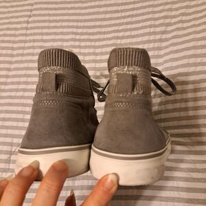 OLD NAVY GRAY SUEDE HI TOP SNEAKERS WOMENS SIZE 5 SKATER CASUAL LACE UP NEUTRAL