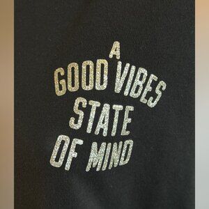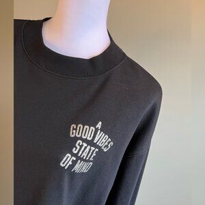 Super cute pullover from OLD NAVY with glitter writing “A GOOD VIBES STATE OF MIND." With balloon sleeves. I personally wore this as a crop sweatshirt.