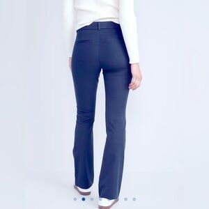 Sleek navy pants. Straight leg design. Comfortable fit.