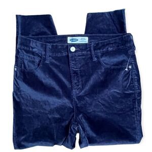 Old Navy High-Waisted Rockstar Super Skinny Velvet Jeans Midnight Blue Raw Hem Size 12