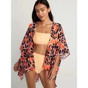 OLD NAVY Lightweight Duster Swimsuit Cover Up Orange Palm Cotton XL-4X NWT