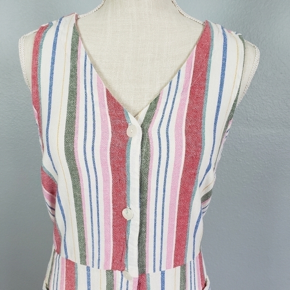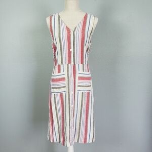 OLD NAVY Linen Blend Striped Button Front Dress Sz S