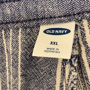 OLD NAVY Linen coastal blue Stripe Wide Leg hi rise pull on palazzo pant XXL